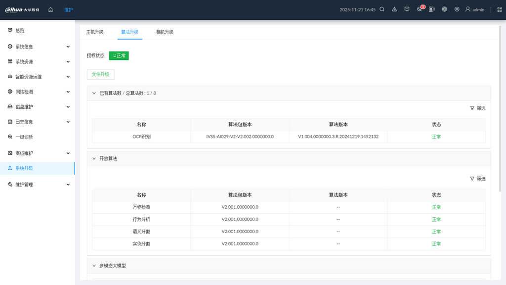 在左侧选择”系统升级“后,右侧选择算法升级。