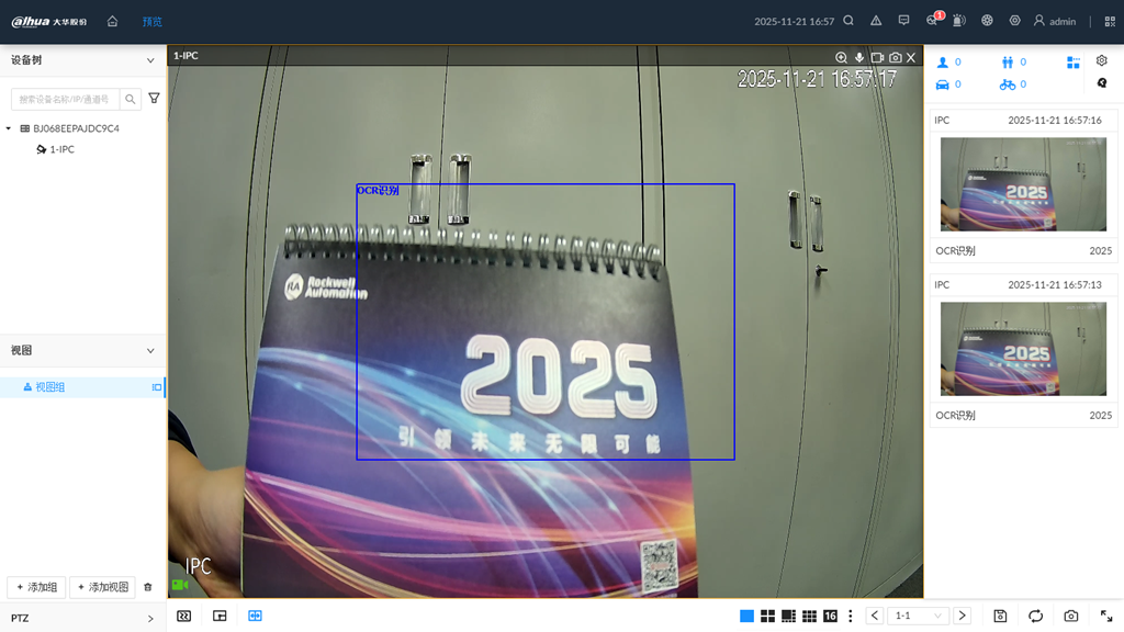 返回预览界面。界面上有在OCR配置里面框选的检测区域,在区域内的文字可以被识别到。