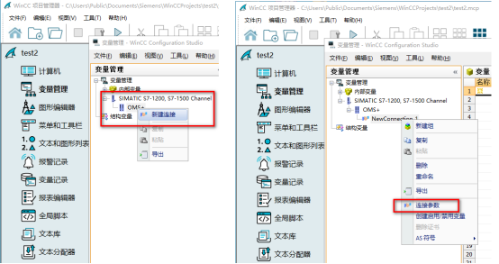 激活WinCC 项目,在变量管理器中能看到通信连接握手处打绿✓,表示通信已建立。