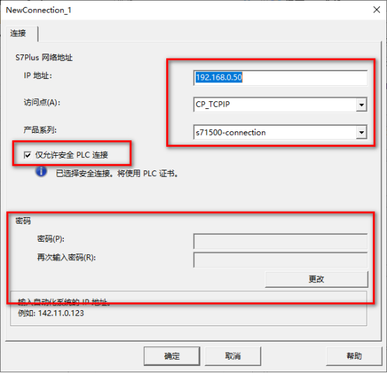 这种情况下,如果选择禁用访问控制,WinCC项目中的通信组态无需填写任何访问密码。