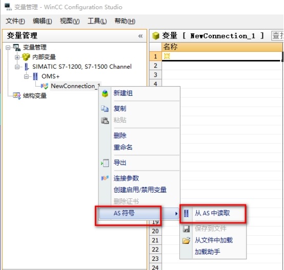 也可以在线加载PLC中的数据。鼠标右键选择通信连接,选择“从AS中读取”。